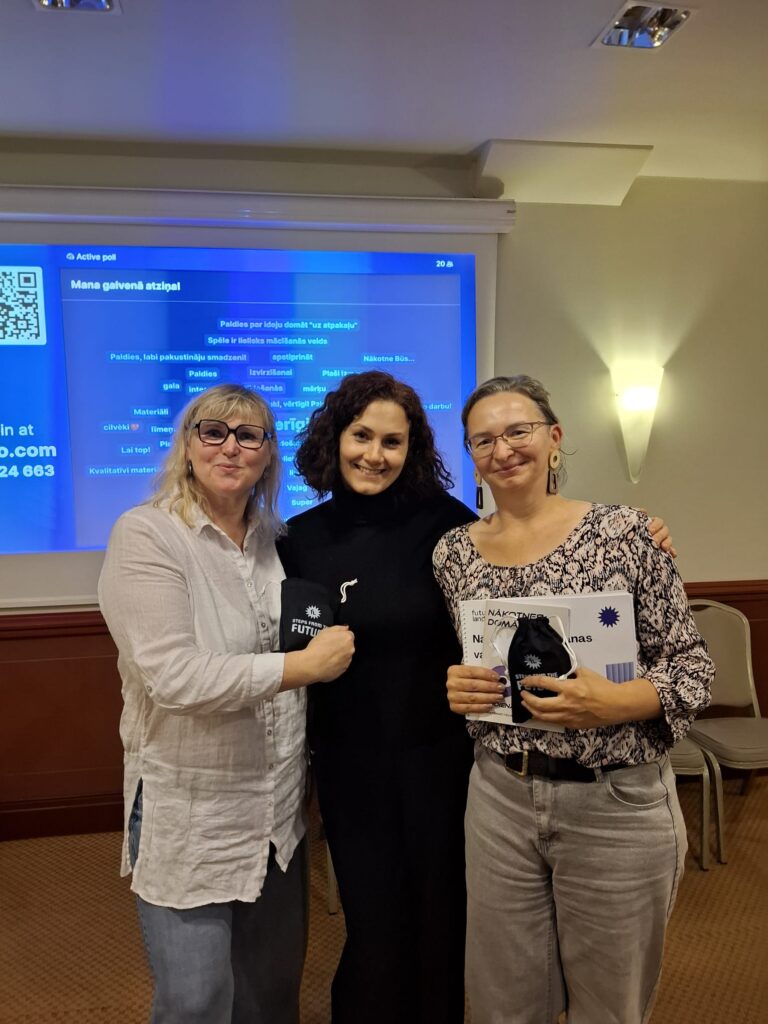 Biedrības Mums pieder pasaule vadītāja Vita Reinfelde piedalījās nākotnes domāšanas nodarbībā, kur @gintasalmina ar komandu prezentēja savu jaunāko “lolojumu” –